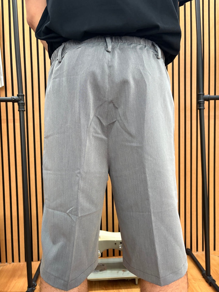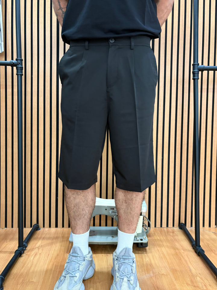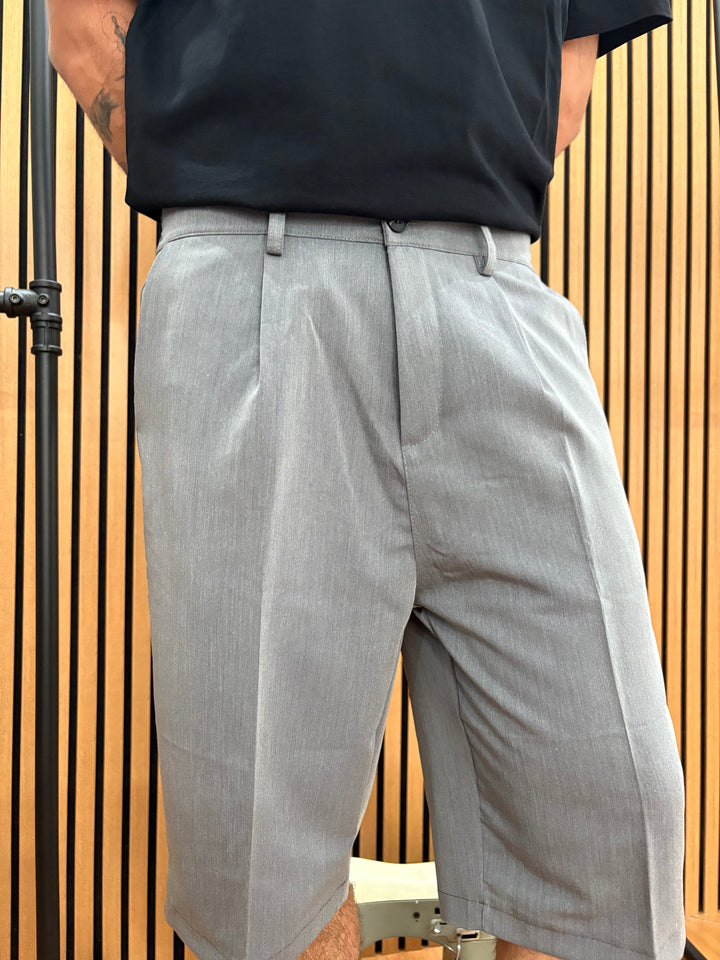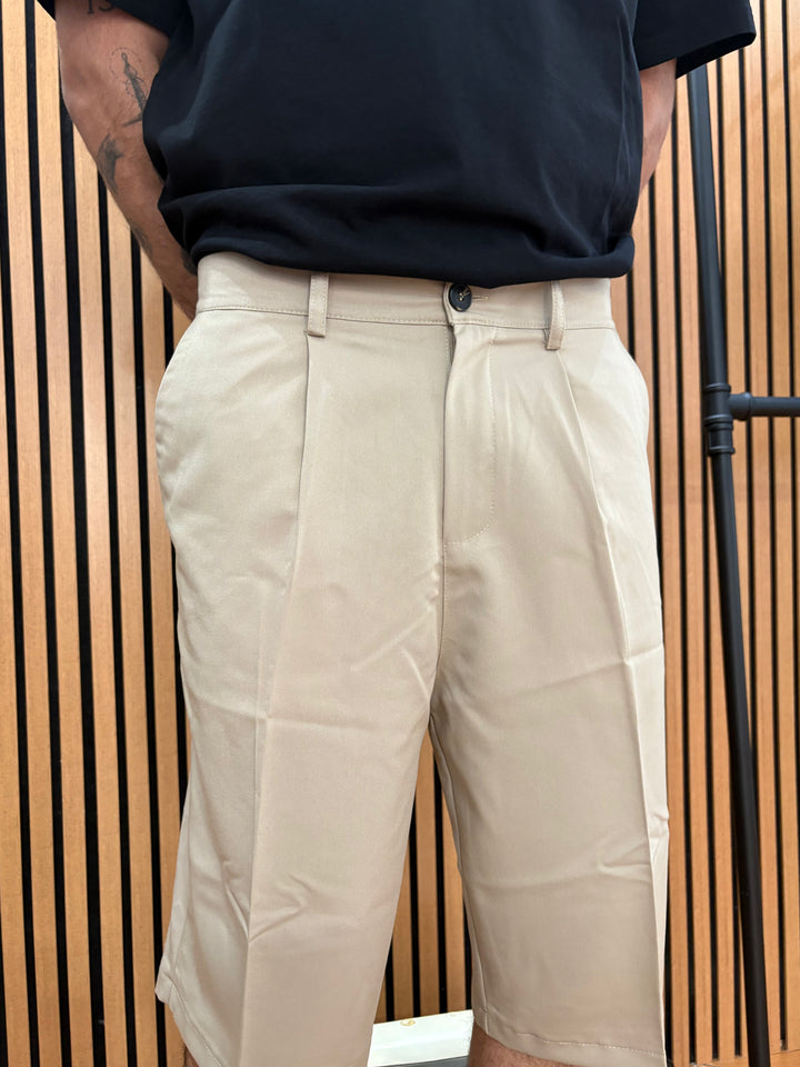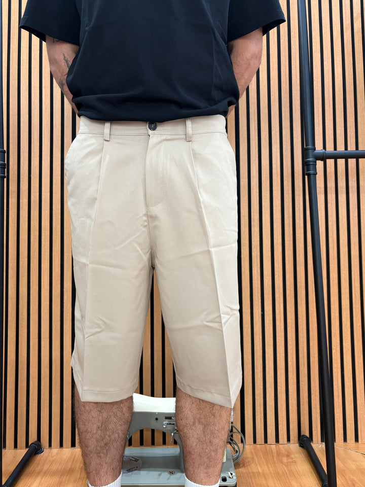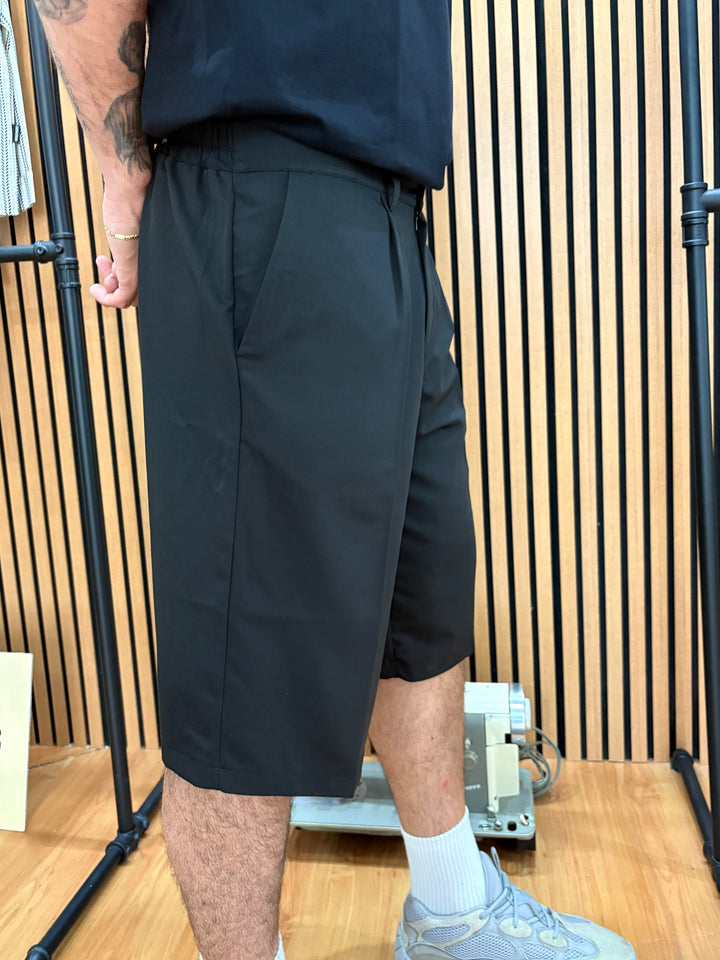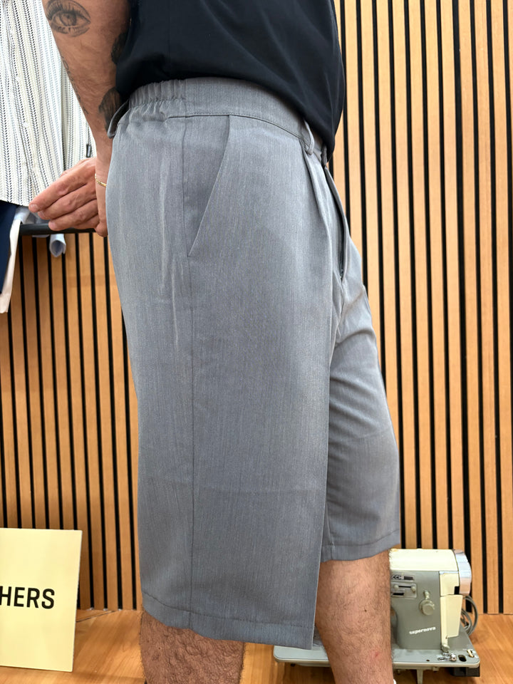 Il bermuda Classic si presenta in tre varianti di colore, nero, grigio e beige. La particolarità sta nella doppia pence , e dell’elastico in vita.