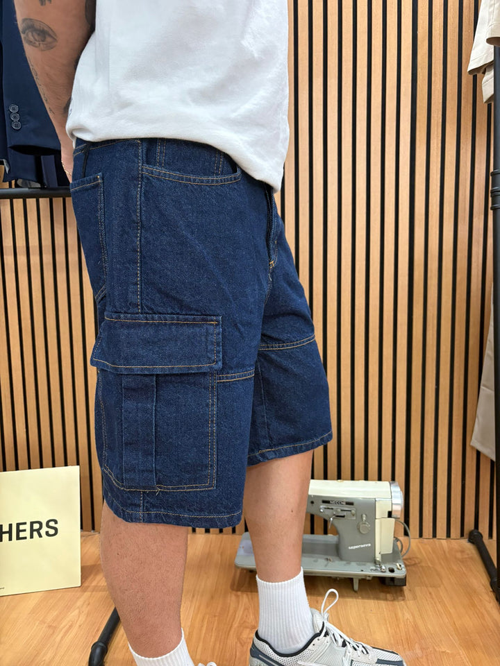 il bermuda jeans è disponibile in una sola variante di colore jeans con particolarità dei tasconi laterali.