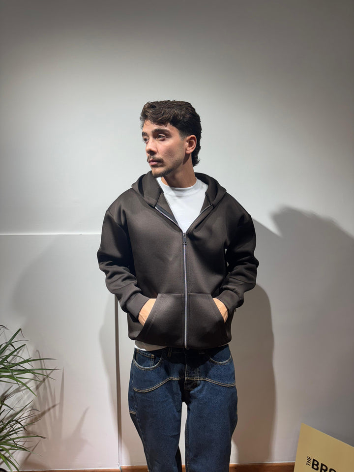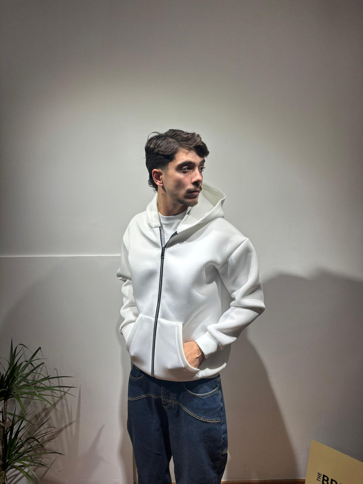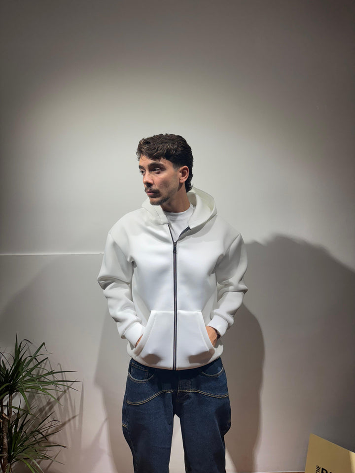 La felpa Scuba è una felpa con cerniera, ottima per ogni occasione, casual o più elegante, si presenta in tre varianti di colore nero, moro e bianco