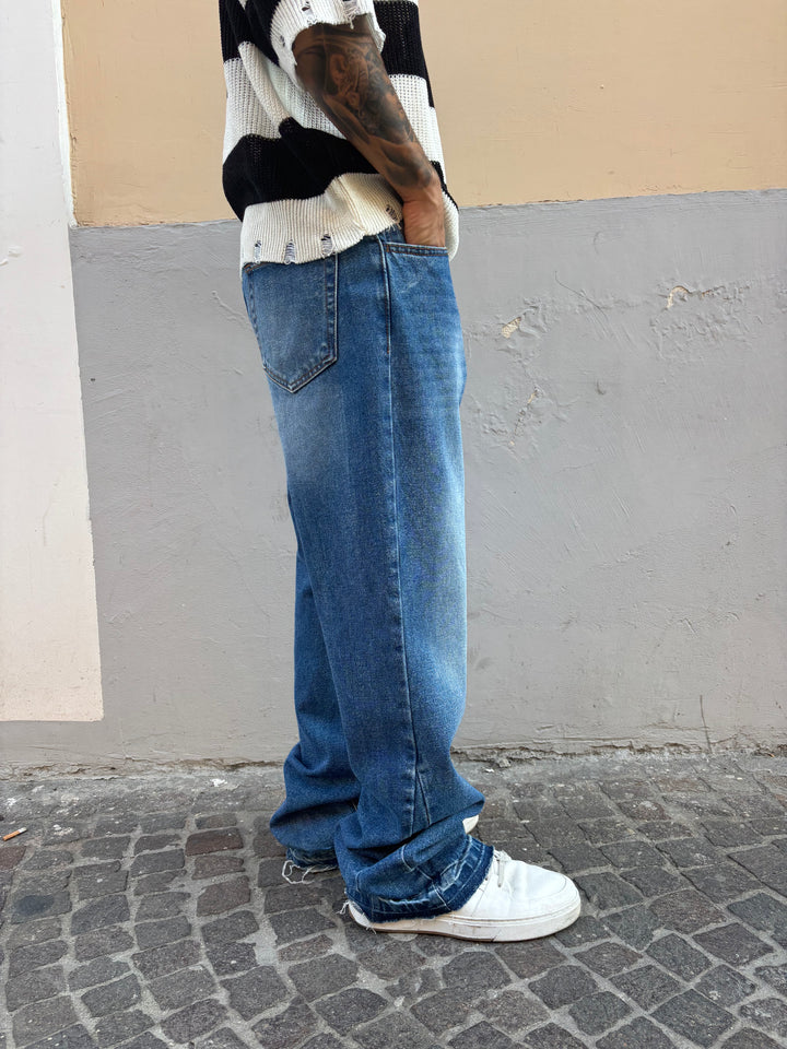 Il flare fondo largo è disponibile in un unica variante di colore jeans