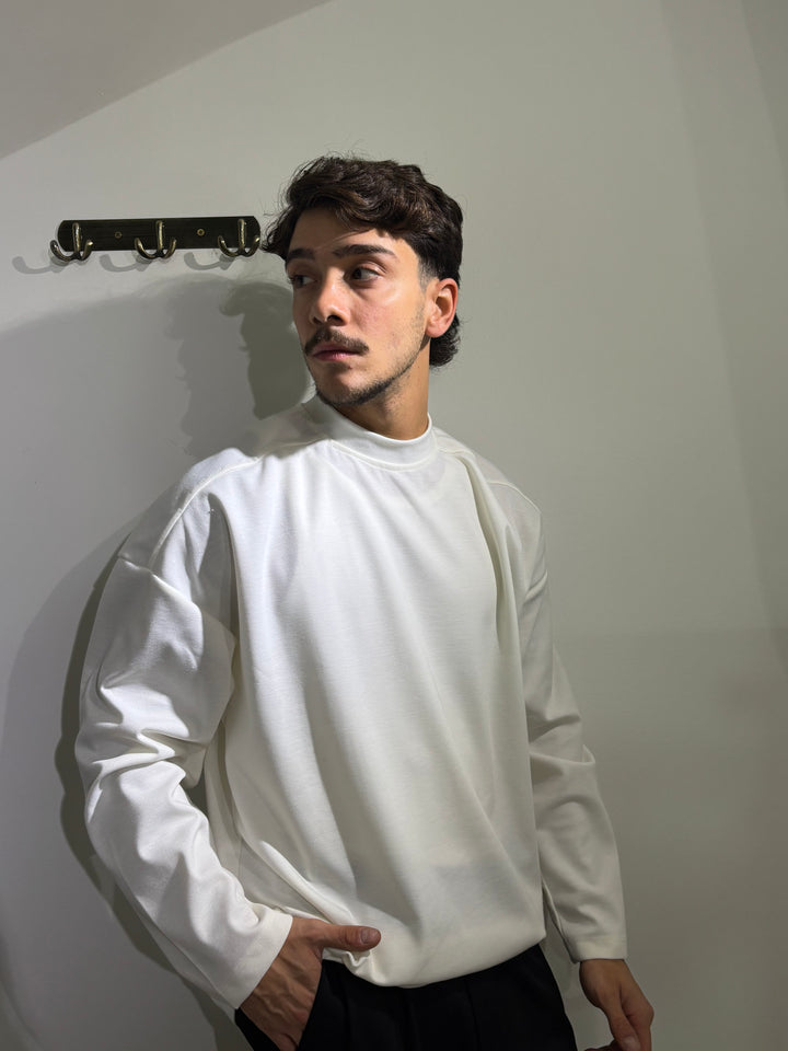 La nostra LONGSLEEVE in tessuto punto milano, vestibilità regolare, in doppia variante di colore, bianco e nero