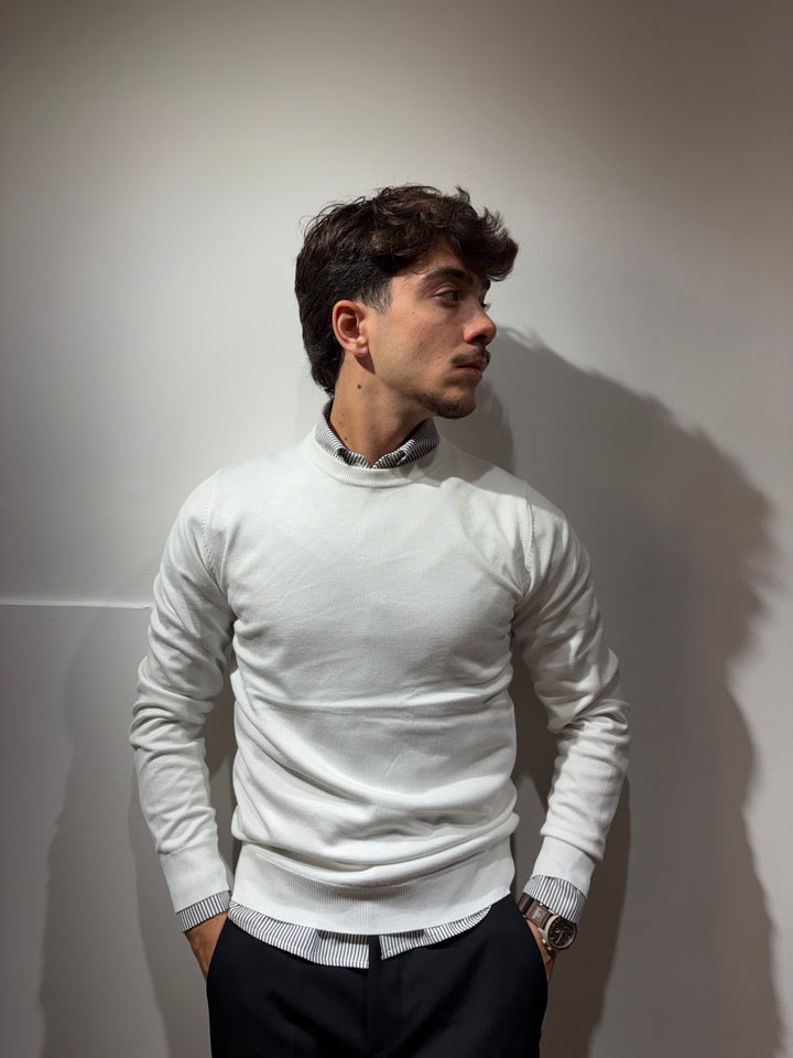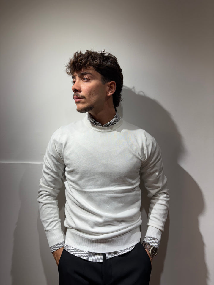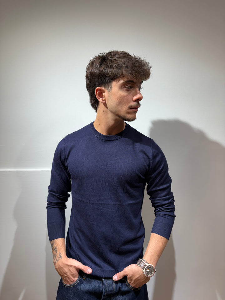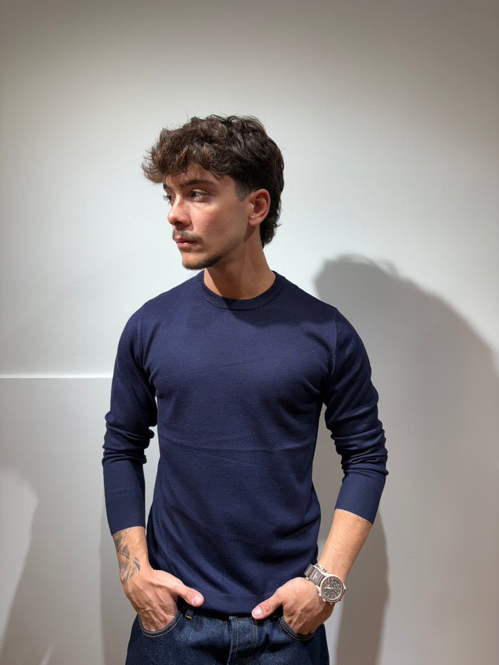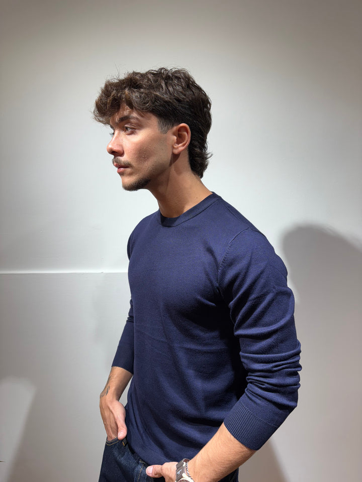 Il maglioncino SOFT si presenta con vestibilità regolare, girocollo, manica lunga con elastico ai polsi, disponibile in tre varianti di colore, panna, moro e blu notte
