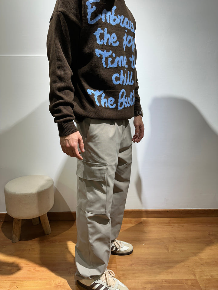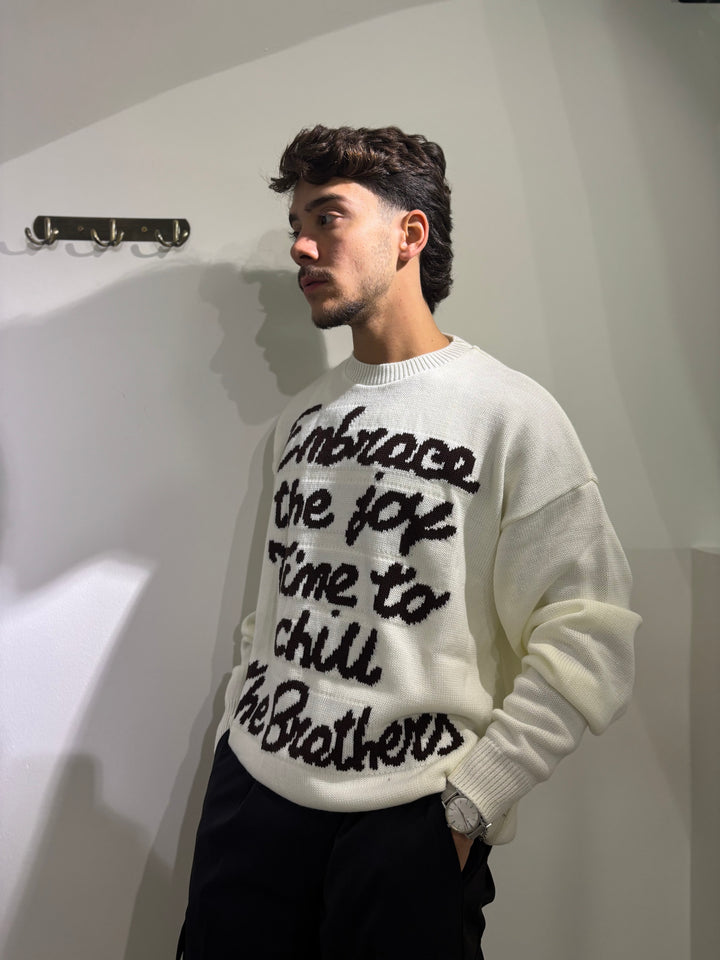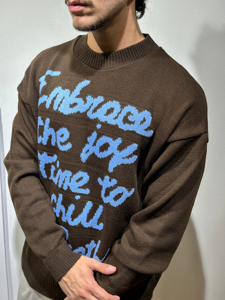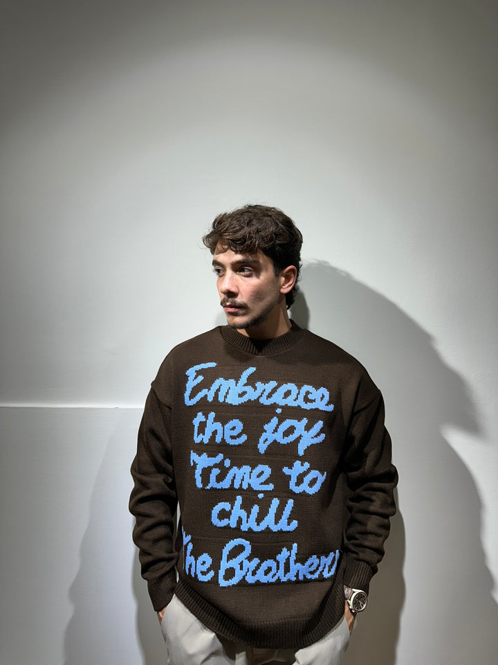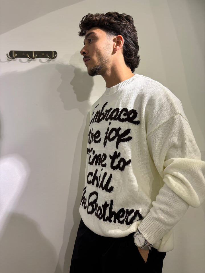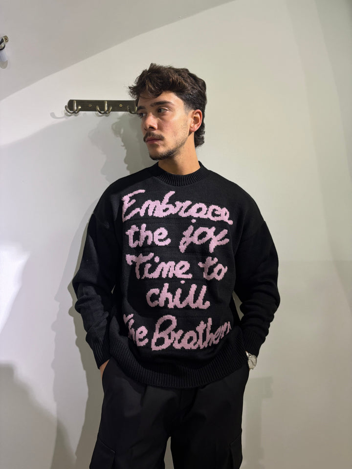 Il maglione COURMAYEUR tinta unita con scritta a contrasto, varianti di colore, moro con scritta azzurra, nero con scritta rosa e panna con scritta moro, vestibilità oversize