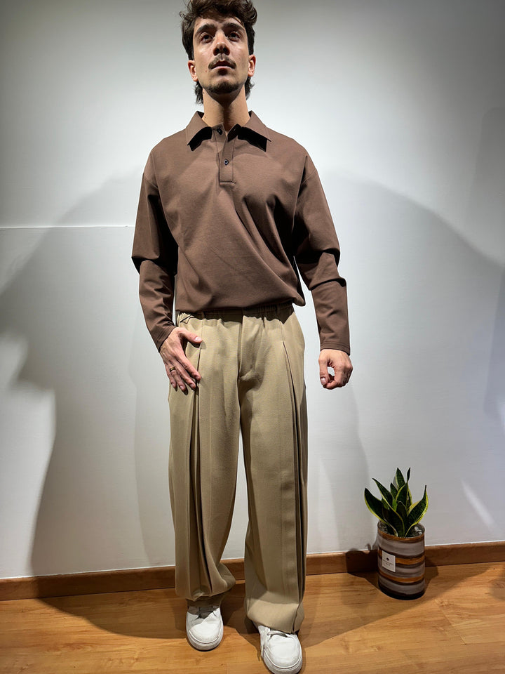 Il pantalone JAPAN è un panta a fondo largo , con la particolarità della doppia pences davanti, che scende fino a metà gamba
