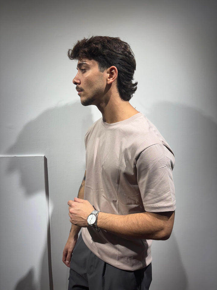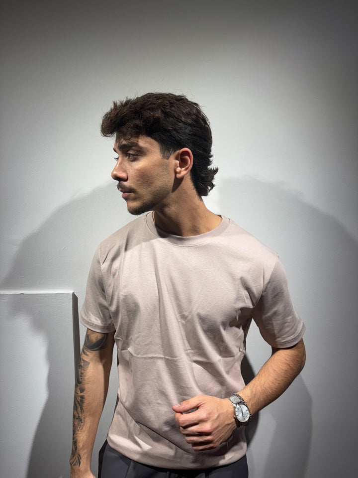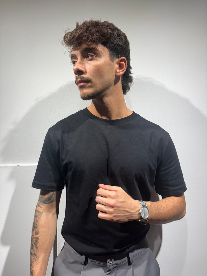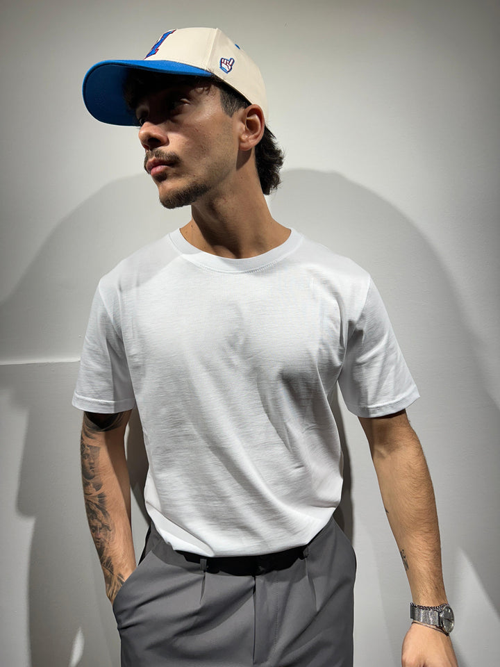 Shirt girocollo in cotone, disponibile in 3 varianti di colore, bianca, nera e beige