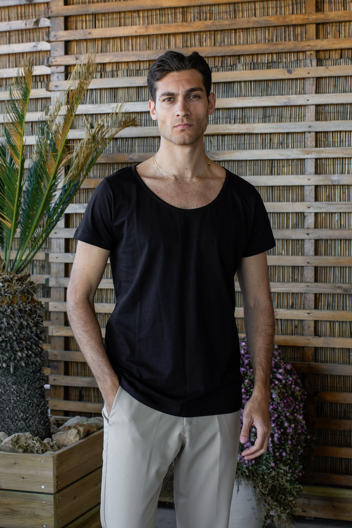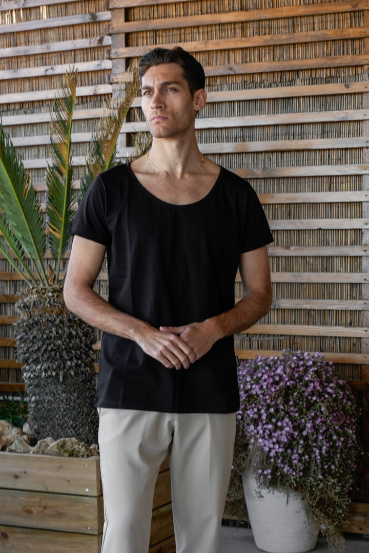 La shirt Mykonos si presenta in 2 varianti di colore , bianco e nero . La sua scollatura rende il prodotto unico .